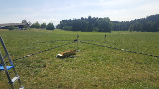 I started preparations on Thursday. As usually I built the Spiderbeam first. This time I had huge help from Heinz HB9BPH in erecting the antenna to full 15m (on alu mast). It is especially important for the new 40m element which "likes" to be possibly high.